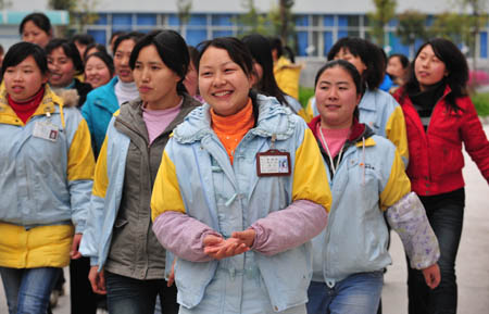 這是湖北省建始縣工業(yè)園一家公司的車間。這個(gè)工業(yè)園去冬今春共招收3600多名返鄉(xiāng)農(nóng)民工。湖北省恩施土家族苗族自治州建始縣采取多種措施,幫助返鄉(xiāng)農(nóng)民工就近就地就業(yè),取得良好效果。目前,該縣因各種原因滯留在家的農(nóng)民工已有91.2%實(shí)現(xiàn)了家門口再就業(yè)。
