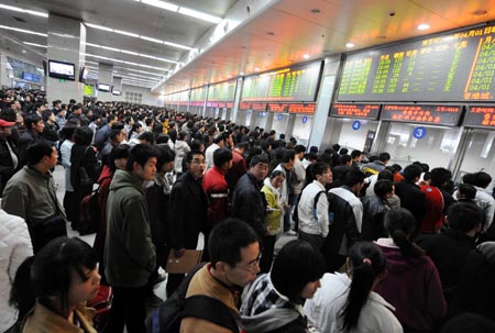 4月2日,大量旅客在南京火車(chē)站售票廳排隊(duì)購(gòu)票。隨著清明節(jié)假期的臨近,南京火車(chē)站購(gòu)票旅客開(kāi)始增多,車(chē)站各售票窗口前均排起長(zhǎng)隊(duì),部分旅客為避開(kāi)假期客流高峰而提前出行。