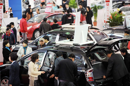 4月15日,2009年沈陽春季車展在遼寧工業(yè)展覽館開幕。展會(huì)期間,參展企業(yè)將推出系列優(yōu)惠活動(dòng),包括價(jià)格直降、贈(zèng)送保養(yǎng)、贈(zèng)送油票和裝飾等。圖為市民在沈陽春季車展上參觀。