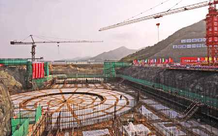這是浙江三門核電一期工程開工儀式準(zhǔn)備就緒。4月19日,我國首個(gè)第三代核電自主化依托項(xiàng)目——浙江三門核電一期工程開工儀式舉行。據(jù)悉,作為迄今為止中美能源合作建設(shè)的最大項(xiàng)目,三門核電工程采用美國西屋公司開發(fā)的全球最先進(jìn)的第三代先進(jìn)壓水堆核電(AP1000)技術(shù),工程分三期建設(shè),一期工程總投資400多億元,將建設(shè)2臺(tái)125萬千瓦級(jí)核電機(jī)組,首臺(tái)機(jī)組計(jì)劃于2013年建成。 |