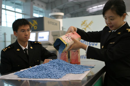 4月26日是世界知識(shí)產(chǎn)權(quán)日,大連海關(guān)當(dāng)天對(duì)外公布,今年以來(lái)該關(guān)已在多個(gè)渠道查獲侵犯輝瑞商標(biāo)權(quán)案件,查獲藥品市場(chǎng)價(jià)值近400萬(wàn)元,保護(hù)了“萬(wàn)艾可”、“VIAGRA”、“Pfizer”、“萬(wàn)艾可藍(lán)色菱形三維立體商標(biāo)”等多個(gè)商標(biāo)。
