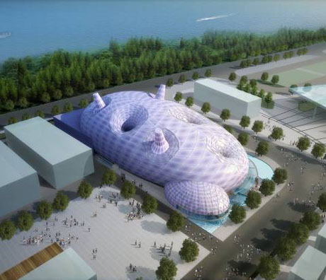 截至7月1日,累計(jì)已有191個(gè)國(guó)家和48個(gè)國(guó)際組織確認(rèn)參展上海世博會(huì),其中21個(gè)國(guó)家尚未與中國(guó)建交。落戶世博園區(qū)的國(guó)家、國(guó)際組織和外國(guó)城市案例展館將超過100個(gè)。圖為日本館的弧形穹頂造型猶如蠶繭(效果圖)。