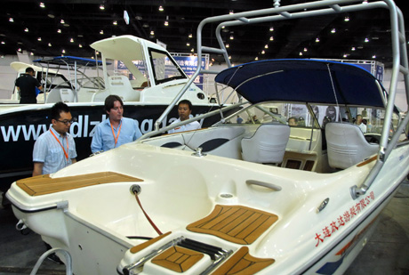 7月9日,觀眾在2009中國(guó)大連國(guó)際游艇展上觀看帆船。當(dāng)日,為期四天的“2009中國(guó)大連國(guó)際游艇展覽會(huì)”在大連星海會(huì)展中心開幕。本次展覽是“2009中國(guó)航海日”系列活動(dòng)之一,展會(huì)期間除現(xiàn)場(chǎng)展銷國(guó)內(nèi)外廠商生產(chǎn)的游艇外,還將舉行游艇業(yè)論壇及游艇、帆船試乘試駕等活動(dòng)。 新華社發(fā)
