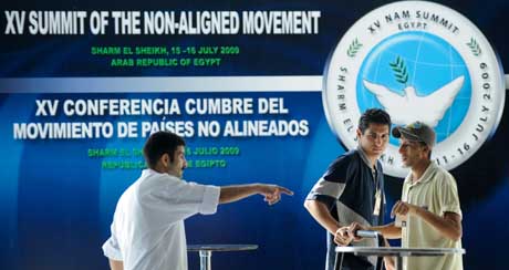 14日,在埃及紅海海濱城市沙姆沙伊赫,工作人員在布置會場的休息交流區(qū)。第15屆不結(jié)盟運動峰會于15日至16日在埃及沙姆沙伊赫舉行,此次峰會主題為“世界團結(jié)、和平發(fā)展”。目前峰會各項準(zhǔn)備工作已進入最后階段。