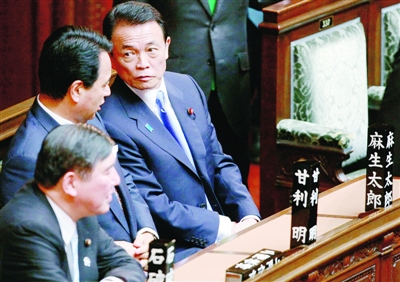 7月21日,日本首相麻生太郎(右)出席在東京國會眾議院舉行的全體會議。當(dāng)日,日本國會眾議院議長河野洋平在眾議院全體會議上宣讀經(jīng)天皇簽署的“解散詔書”,眾議院正式宣告解散。