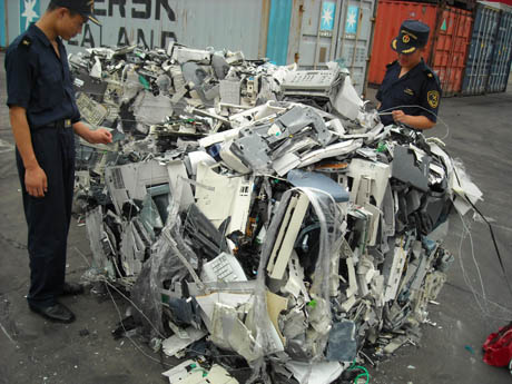 近日,寧波海關(guān)在進(jìn)口的廢塑料2個(gè)集裝箱中,發(fā)現(xiàn)了24.38噸國(guó)家禁止進(jìn)口的廢打印機(jī)、計(jì)算機(jī)主機(jī)、鍵盤(pán)等固體廢物。該批貨物為臺(tái)州某公司從美國(guó)進(jìn)口。廢舊計(jì)算機(jī)含有多種有毒化學(xué)物質(zhì),如汞、鎘等,這些有毒物質(zhì)對(duì)人體及環(huán)境造成極大危害。