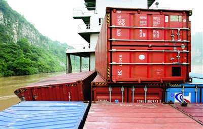 發(fā)生事故的集裝箱船上部分集裝箱落水(8月11日攝)。一艘裝載有危險(xiǎn)化學(xué)品的集裝箱滾裝船10日深夜在長(zhǎng)江三峽大壩—葛洲壩水域發(fā)生集裝箱落水事故,幸無人員傷亡。目前已知有62個(gè)集裝箱落入江中,其中部分屬于危化品集裝箱。長(zhǎng)江海事局已啟動(dòng)應(yīng)急預(yù)案,派出4艘海事巡邏艇趕赴現(xiàn)場(chǎng)開展應(yīng)急處置及海事調(diào)查工作,并調(diào)集大馬力拖輪前往現(xiàn)場(chǎng)施救。同時(shí),進(jìn)行船閘控制運(yùn)行,協(xié)調(diào)梯調(diào)中心控制葛洲壩下泄流量。新華社發(fā)