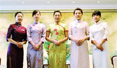9月7日,香格里拉大飯店服務人員在展示五款旗袍。