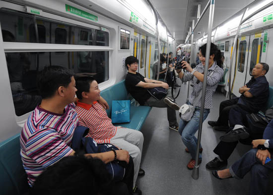 9月28日,乘客在地鐵四號線車廂內(nèi)拍照留念。 當(dāng)日,北京地鐵4號線開通試運(yùn)營。北京地鐵4號線是繼地鐵5號線之后北京市另一條貫穿市區(qū)南北的軌道交通主干線,該線全長28.2公里,設(shè)24座車站,沿線設(shè)換乘站9座。4號線的開通,使北京軌道交通運(yùn)營里程接近230公里,車站達(dá)147座。