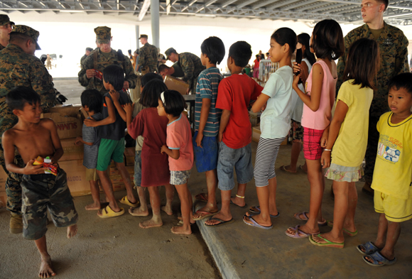 10月11日,在菲律賓邦阿西楠省的羅薩萊斯,孩子們排隊(duì)領(lǐng)取救災(zāi)藥品。菲律賓救災(zāi)部門當(dāng)日早晨通報(bào),熱帶風(fēng)暴“凱薩娜”和“芭瑪”兩周來連續(xù)襲擊菲北部呂宋島,造成多個(gè)省份發(fā)生大面積洪災(zāi)和山體滑坡。救援人員現(xiàn)已發(fā)現(xiàn)超過500具遇難者尸體,另有83人至今下落不明。新華社/法新