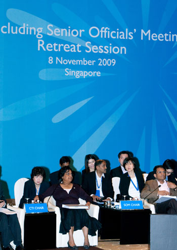 11月8日,亞太經(jīng)合組織各成員代表出席亞太經(jīng)合組織高官會議。亞太經(jīng)合組織高官會議當(dāng)日開始在新加坡舉行,拉開了亞太經(jīng)合組織領(lǐng)導(dǎo)人會議周的帷幕。應(yīng)對國際金融危機、反對貿(mào)易保護主義、推動多哈回合談判及加強區(qū)域經(jīng)濟合作等預(yù)期將是重要議題。