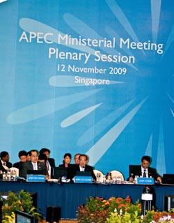 亞太經(jīng)濟(jì)合作組織(APEC)第十七次領(lǐng)導(dǎo)人非正式會(huì)議將于14日至15日在新加坡舉行。包括美國和中國在內(nèi),亞太經(jīng)合組織21個(gè)成員的領(lǐng)導(dǎo)人和代表齊聚一堂,以“促進(jìn)持續(xù)增長、密切區(qū)域聯(lián)系”為主題共同商討世界和地區(qū)熱點(diǎn)問題。在此之前舉行的APEC第21次部長級會(huì)議和第16屆財(cái)長會(huì)議已為本次領(lǐng)導(dǎo)人非正式會(huì)議定下了基調(diào)。