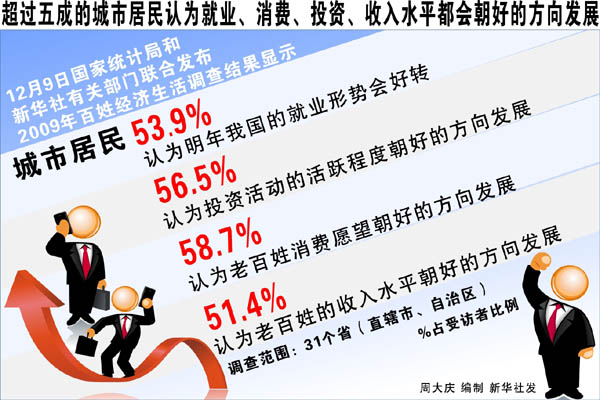 國家統(tǒng)計局社情民意調(diào)查中心與新華通訊社所屬經(jīng)濟參考報、新華網(wǎng)、新聞研究所等單位今年11月聯(lián)合啟動“2009年百姓經(jīng)濟生活調(diào)查”,12月9日正式發(fā)布調(diào)查結果。 此次調(diào)查由三部分組成,分別是國家統(tǒng)計局社情民意調(diào)查中心受新華社委托進行的電話調(diào)查,新華社31個分社在所在省區(qū)市圍繞城鄉(xiāng)百姓經(jīng)濟生活熱點進行的入戶訪問,以及在新華網(wǎng)上開展的網(wǎng)民調(diào)查。內(nèi)容涉及對金融危機的知曉度、對金融危機影響的感受、對金融危機應對措施的認知和對未來經(jīng)濟走勢的判斷等。(詳見今日二、六、七版) |