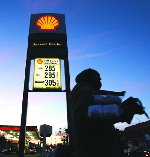 1月6日,在美國紐約,一名行人從一個加油站的油價牌下走過。由于美元走軟抵消了美國原油商業(yè)庫存意外增加的影響,國際油價6日繼續(xù)上揚(yáng),并一舉突破每桶83美元。
