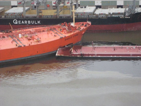 這張1月23日由美國海岸警衛(wèi)隊(duì)發(fā)布的照片顯示,在美國得克薩斯州阿瑟港,一艘油輪與一艘牽引船相撞。 這次撞船事故造成油輪船體損壞,原油泄漏。美國海岸警衛(wèi)隊(duì)官員估計(jì),泄漏原油數(shù)量可能達(dá)到1.1萬桶,約170萬升。