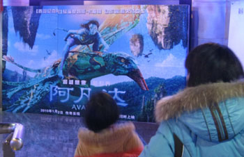 圖為觀眾路過北京一家影院貼出的《阿凡達(dá)》巨幅海報。新華社記者 張燕輝/攝 |