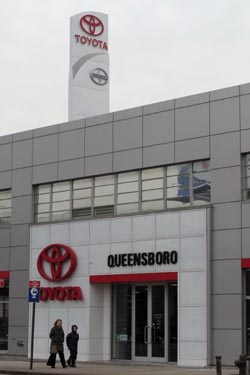 兩名行人從美國(guó)紐約的一家豐田汽車專賣店門前走過(guò)。新華社記者 劉欣