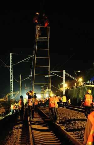 鐵道部消息,經(jīng)過鐵路部門、地方政府和當(dāng)?shù)伛v軍、武警、公安民警等全力搶修,因山體滑坡中斷的滬昆鐵路已于當(dāng)日21時(shí)15分恢復(fù)正常行車。
