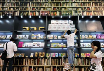 5月17日,參展單位工作人員在展架上整理漫畫(huà)書(shū)籍等參展品。當(dāng)日,第六屆中國(guó)(深圳)國(guó)際文化產(chǎn)業(yè)博覽交易會(huì)落下帷幕。本屆文博會(huì)的總成交額已過(guò)千億元,超過(guò)上屆總成交額。新華社記者