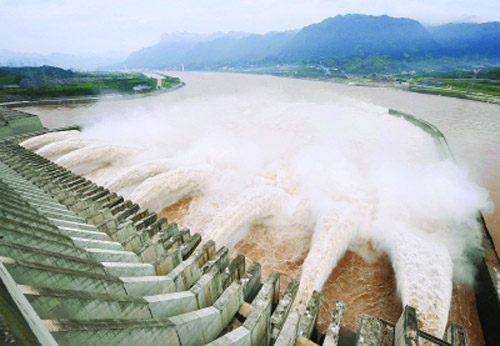 7月19日下午,三峽大壩開啟7個泄洪深孔和2個排漂孔泄洪。 7月19日至20日上午,三峽水庫將迎來峰值接近每秒7萬立方米的洪水,是三峽工程建成以來的最大規(guī)模的洪水。據(jù)了解,19日下午2∶00,三峽庫區(qū)入庫流量已達每秒66500立方米,出庫流量達每秒38100立方米;到17∶00,壩前水位147.74米。