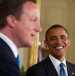7月20日,在美國(guó)首都華盛頓白宮,美國(guó)總統(tǒng)奧巴馬(右)與到訪的英國(guó)首相卡梅倫會(huì)談后出席聯(lián)合新聞發(fā)布會(huì)。 最近,英國(guó)石油公司由于墨西哥灣漏油事件以及被懷疑就釋放洛克比空難制造者進(jìn)行游說而飽受美國(guó)朝野批評(píng),卡梅倫試圖借此次訪問平息這一重要盟友的憤怒。