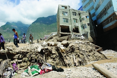 這是舟曲縣被泥石流沖毀的樓房(8月8日攝)。