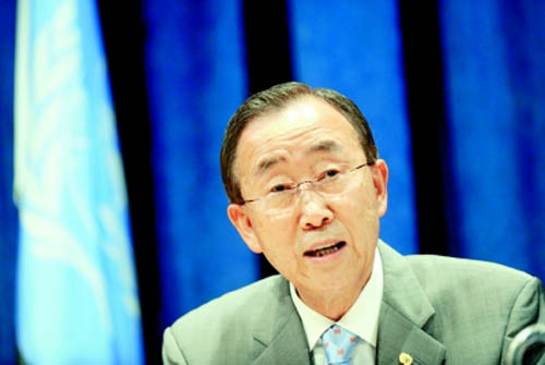 8月9日,在紐約聯(lián)合國總部,聯(lián)合國秘書長潘基文對媒體講話。當日,潘基文在聯(lián)合國總部宣布成立一個全球可持續(xù)發(fā)展高級別小組,研究如何在應對氣候變化的同時實現(xiàn)發(fā)展、消除貧困。小組的成員為一些國家的政要和在相關領域有過卓越建樹的個人,芬蘭總統(tǒng)哈洛寧和南非總統(tǒng)祖馬擔任共同主席,中國氣象局局長鄭國光也是小組成員之一。 |