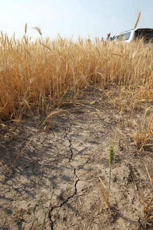 因為干旱,已成熟的小麥果實質(zhì)量明顯差于豐收年。新華社記者 魯金博/攝 |