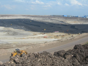 記者在寶日希勒能源公司礦產(chǎn)中心露天煤礦看到,面積約20平方公里的煤礦多臺(tái)采掘機(jī)正在不停地作業(yè),在煤礦周邊,草原沒有綠草如茵的景色,一條條黑色污染帶縱橫交錯(cuò)。