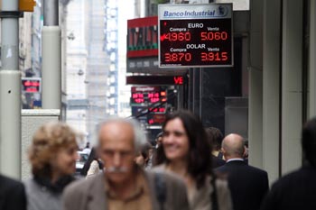 阿根廷首都布宜諾斯艾利斯,人們從市中心一家貨幣兌換機(jī)構(gòu)門前走過,歐洲債務(wù)危機(jī)影響南美金融市場(chǎng)。新華社發(fā) |