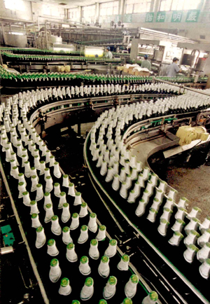 青島啤酒廠的現(xiàn)代化啤酒灌裝車(chē)間。新華社發(fā) |