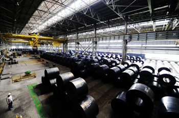 鞍鋼第三煉鋼連軋廠熱軋卷板車間。新華社記者 任勇
