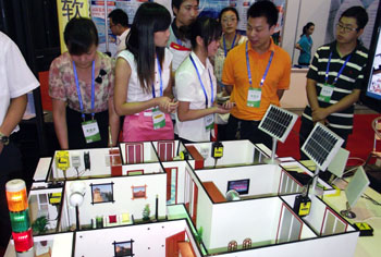 9月5日,參觀者在南京舉行的國際軟件產(chǎn)品博覽會(huì)展廳觀看“智能家居”物聯(lián)網(wǎng)模型。物聯(lián)網(wǎng)如今已成為國內(nèi)各大科技展的熱點(diǎn)。新華社記者 王啟明/攝 |