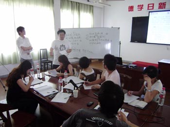 方太集團董事長茅理翔在把企業(yè)交給子女后,于2006年創(chuàng)辦專門針對民營企業(yè)的“家業(yè)長青”學院。圖為“家業(yè)長青”學院學員在課堂上組織領導力測評。資料照片 |