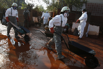 據(jù)匈牙利通訊社報(bào)道,10月4日下午,匈牙利鋁生產(chǎn)貿(mào)易公司位于奧伊考的鋁廠儲(chǔ)存有毒廢水的池子決堤,100萬立方米含有鉛等重金屬的有毒廢水流入附近3個(gè)村鎮(zhèn)以及河流,涌入450多棟房屋中,含有重金屬的強(qiáng)堿性有毒廢水燒傷接觸者的皮膚,許多人攀上屋頂?shù)却仍?BR> 截至10月8日,這起事故已造成7人死亡,1人失蹤,150人受傷。遇難者中包括一名因所駕車輛被埋死亡的男子、一名老婦人、1名3歲兒童和1名僅3個(gè)月大的嬰兒。