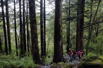 觀測資料顯示,森林區(qū)比無林區(qū)的降水量最多可增加25%。森林涵養(yǎng)水源,每公頃森林地面的凋落物層,能吸收11噸到33噸水,林地水分下滲率是農(nóng)耕地和牧草地的三到12倍,在月降水量不超過80到90毫米時,林地?zé)o地表徑流發(fā)生,森林可使降水的50%到80%滲入地下,一畝林地至少比一畝無林地多蓄水20立方米,每公頃森林每天從地下吸收70到100噸