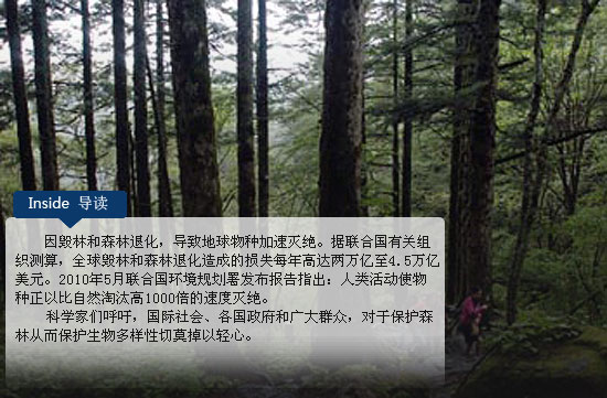 地球曾發(fā)生過(guò)五次大規(guī)模生物滅絕事件,如今,人類活動(dòng)可能正使地球經(jīng)歷又一次生物大滅絕險(xiǎn)境。森林是世界上最大的“儲(chǔ)碳庫(kù)”,是數(shù)以萬(wàn)計(jì)生物繁衍生息的重要棲息地,森林涵養(yǎng)水源、保護(hù)土壤和為人類提供多種資源。保護(hù)森林,就是拯救地球,就是保護(hù)生態(tài)環(huán)境和生物多樣性。因此,有越來(lái)越多的國(guó)家采取切實(shí)措施,保護(hù)森林、積極植樹造林,以更好地實(shí)現(xiàn)人類與自然和諧持續(xù)發(fā)展。