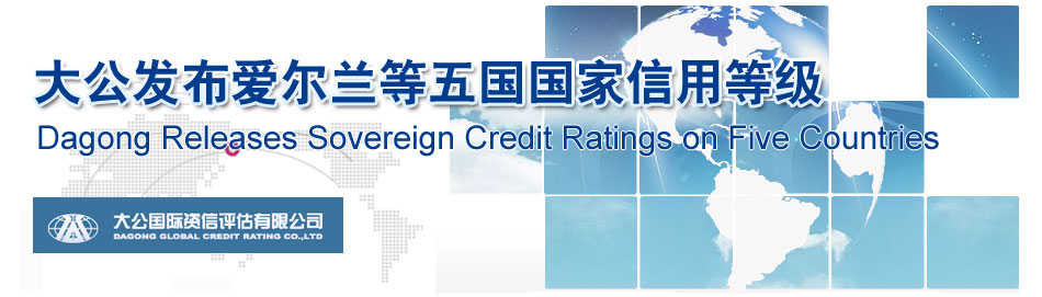 大公國際資信評估有限公司(以下簡稱“大公”)依據(jù)大公國家信用評級標(biāo)準(zhǔn)對愛爾蘭、芬蘭、烏拉圭、肯尼亞和蘇丹5個國家中央政府的債務(wù)償還能力進行了評估,并于12日6日正式發(fā)布上述五國的國家信用等級。