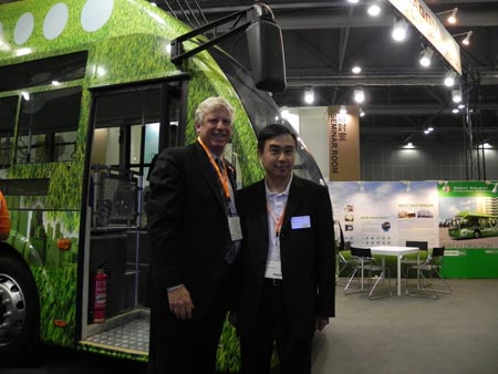 11月3日,山東中文沂星電動(dòng)汽車有限公司帶著他們的新能源車到香港環(huán)保展覽會(huì)參展,受到香港各界的關(guān)注,香港媒體對(duì)山東中文沂星公司及其產(chǎn)品進(jìn)行了大量的報(bào)道,由于供港價(jià)格只及日本同類產(chǎn)品的一半,因此在香港市場(chǎng)引起了巨大的反響。圖為公司董事局主席賈秉成先生與加拿大多倫多市長(zhǎng)暨C40峰會(huì)主席大衛(wèi)在一起的場(chǎng)景。11月5日,山東中文沂星電動(dòng)汽車公司又以龐大陣容參展第25屆世界電動(dòng)車大會(huì)。
