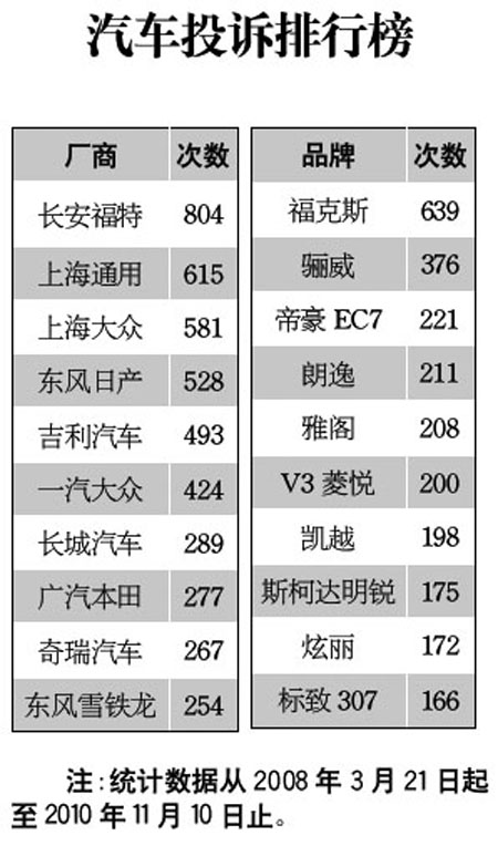 浙江汽車投訴高燒不退 質量問題成投訴焦點
