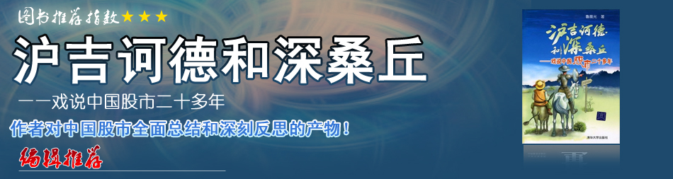 | 魯先生的這本書,用詼諧幽默的筆調(diào),通過描述滬吉訶德與深桑丘主仆在股指山上的經(jīng)歷,還原了中國股市二十多年來的歷史。對老股民來說,是重溫歷史,總結(jié)經(jīng)驗教訓;對新股民來說,則是一本通俗易懂的教材。 |