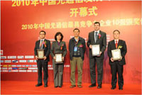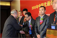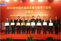 頒獎(jiǎng)典禮上,毛謙(亞太光通信委員會(huì)主任委員/中國通信學(xué)會(huì)光通信委員會(huì)主任委員/《網(wǎng)絡(luò)電信》雜志主編)做了“2010年中國光通信最具競(jìng)爭(zhēng)力企業(yè)十強(qiáng)”評(píng)選活動(dòng)工作總結(jié),高度肯定了中國光通信企業(yè)在過去一年內(nèi)為光通信行業(yè)所做出的貢獻(xiàn),并指出:經(jīng)過幾年來的海外市場(chǎng)拓展及推廣,“年度中國光通信競(jìng)爭(zhēng)力報(bào)告”得到了海外人士的極大關(guān)注及認(rèn)同;評(píng)選數(shù)據(jù)及結(jié)果紛紛被引用和參考。因此,我們決定從2011年起將觀察范圍擴(kuò)大為全球的光通信企業(yè),把《年度中國光通信市場(chǎng)最具品牌競(jìng)爭(zhēng)力企業(yè)10強(qiáng)》榜單改設(shè)為《年度全球光通信市場(chǎng)最具競(jìng)爭(zhēng)力企業(yè)10強(qiáng)》榜單。目的是為了幫助中國光通信企業(yè)更清晰地認(rèn)識(shí)到在經(jīng)濟(jì)全球化的背景下,中外光通信企業(yè)之間的競(jìng)爭(zhēng)力態(tài)勢(shì)!拔覀兛吹絿艺撸3G通信的穩(wěn)步推進(jìn)和三網(wǎng)融合的加快發(fā)展等持續(xù)利好因素給光通信企業(yè)帶來新機(jī)遇,然而多年來困擾光通信產(chǎn)業(yè)的深層次矛盾依然存在,這就需要光通信行業(yè)同仁共同去面對(duì)和解決!