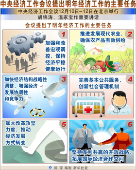 12日閉幕的中央經(jīng)濟工作會議指出,明年將以加快轉(zhuǎn)變經(jīng)濟增長方式為主線,實施積極的財政政策和穩(wěn)健的貨幣政策,宏觀調(diào)控經(jīng)濟政策把穩(wěn)定價格總水平放在更加突出的位置。更加積極穩(wěn)妥地處理好保持經(jīng)濟平穩(wěn)較快發(fā)展、調(diào)整經(jīng)濟結(jié)構(gòu)、管理通脹預(yù)期的關(guān)系。