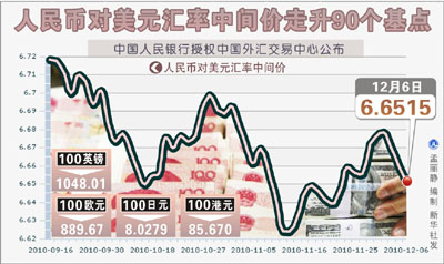 在中國(guó),2010年第三季度新增外匯儲(chǔ)備1940億美元,創(chuàng)1997年以來(lái)的單季新高。其中,三季度中國(guó)的貿(mào)易順差為653億美元,實(shí)際利用外資額為229.1億美元,因主要貨幣相對(duì)美元升值和因資產(chǎn)價(jià)格變動(dòng)導(dǎo)致以美元計(jì)的外匯儲(chǔ)備資產(chǎn)增加約867億美元。這樣,新增外匯儲(chǔ)備中仍有190.9億美元的增加額無(wú)法解釋。增加的1940億美元外儲(chǔ)中有1005億美元是9月份新增的,那么無(wú)法解釋的部分就更大。