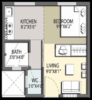 圖為塔塔住房開發(fā)公司“幸運(yùn)之家”項(xiàng)目網(wǎng)站上公布的建筑面積為26.3平方米的零居室戶型圖。 |