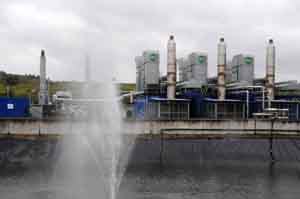 在城市垃圾生物質(zhì)發(fā)電站里,有一座污水處理廠負(fù)責(zé)凈化城市垃圾“山”底部匯聚的雨水及污水的混合液。 |