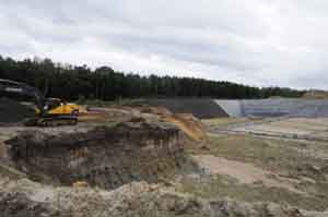 比利時(shí)馬赫爾斯公司已經(jīng)在現(xiàn)有城市垃圾“山”的旁邊開(kāi)挖新的城市垃圾填埋坑,遠(yuǎn)處可以看見(jiàn)已經(jīng)鋪設(shè)的防滲漏塑膠膜。 |