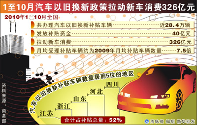 經(jīng)國務(wù)院批準(zhǔn),自2010年6月1日起,結(jié)合各地區(qū)舊家電拆解處理能力等條件,家電以舊換新政策擴(kuò)大到河北、山西、遼寧、大連、吉林、黑龍江、安徽、福建、廈門、江西、河南、湖北、湖南、重慶、四川、貴州、陜西、甘肅、青海等并逐步推廣到全國范圍內(nèi)實(shí)施,截止時(shí)間暫定為2011年12月31日。汽車以舊換新政策的實(shí)施期限也由2010年5月31日延長至2010年12月31日。