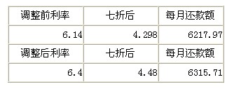 中國人民銀行決定,自2010年12月26日起上調(diào)金融機構(gòu)人民幣存貸款基準利率。金融機構(gòu)一年期存款基準利率上調(diào)0.25個百分點,其他各檔次存貸款基準利率相應(yīng)調(diào)整。 房貸利率(五年期以上貸款利率)上調(diào)至6.40%。房奴們影響幾何?理財師為大家算了一筆賬,以100萬元20年首套房貸款計算,在等額本息償還方式下,每月貸款額變化如下: