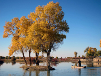 塔里木河的不羈造就了她獨特的生態(tài)系統(tǒng),在蒼茫沙海中形成了神奇的沙漠森林和沙漠草原景觀,僅塔里木河流域的胡楊樹就占中國胡楊總面積的70%以上。每年10月中旬以后,被胡楊樹遮掩的塔里木河流域呈一片金黃,若從空中俯瞰,大地猶如鋪蓋上金色的地毯,眾多的河汊湖泊鑲嵌其上形如寶石,景色獨一無二,壯美之極。不論是沙丘上還是河道旁,胡楊樹皆展現(xiàn)玲瓏剔透的金燦,也透露出另一種不羈和滄桑的美,此時的塔里木是我國西部最好的觀賞、度假、攝影的去處之一。